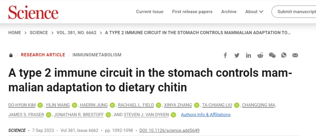 [3] Kim DH, Wang Y, Jung H, Field RL, Zhang X, Liu TC, Ma C, Fraser JS, Brestoff JR, Van Dyken SJ. A type 2 immune circuit in the stomach controls mammalian adaptation to dietary chitin. Science. 2023 Sep 8;381(6662):1092-1098. doi: 10.1126/science.add5649. Epub 2023 Sep 7. PMID: 37676935; PMCID: PMC10865997.[4]杨月欣.食物营养成分速查.人民日报出版社.2006.[5]杨月欣.中国食物成分表第6版第1、2册[M].北京大学医学出版社,2018