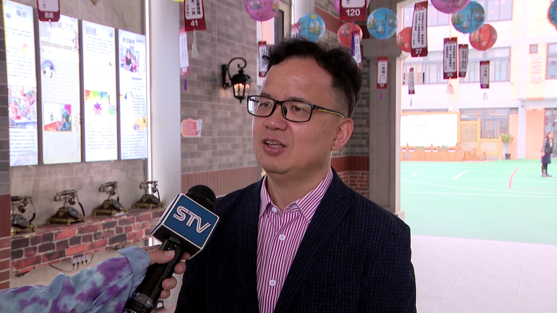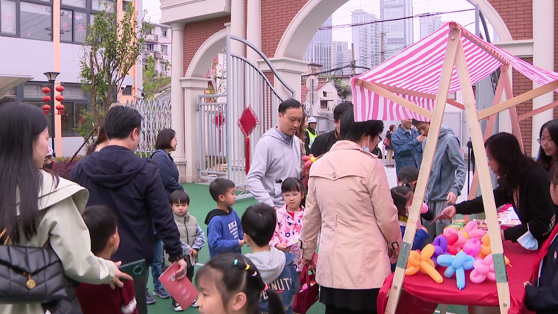 据复兴东路第三小学校长季峻岭介绍:“今天的活动有亲子互动,也有小伙伴之间的体育游戏等等,我们希望家长、孩子能和学校的一草一木,教室的环境布置以及学校的人文加科技的空间元素建立联系。比如说现在这块地方就是上海老街,希望我们的小朋友未来能够在课后服务当中了解更多的老城厢文化。”