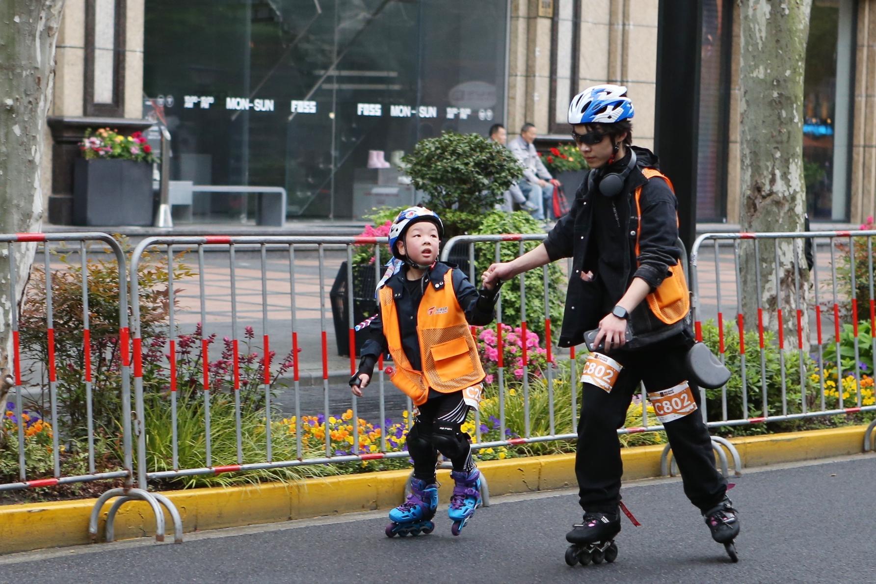 4月14日上午7点,2024黄浦马拉松鸣枪开跑。本届赛事以“轮炫黄浦 为爱奔跑”为主题,途径外滩、中共一大会址等经典地标,是上海首次将“轮滑”与“路跑”相融合的马拉松赛事,吸引了近5000名运动员参与。
