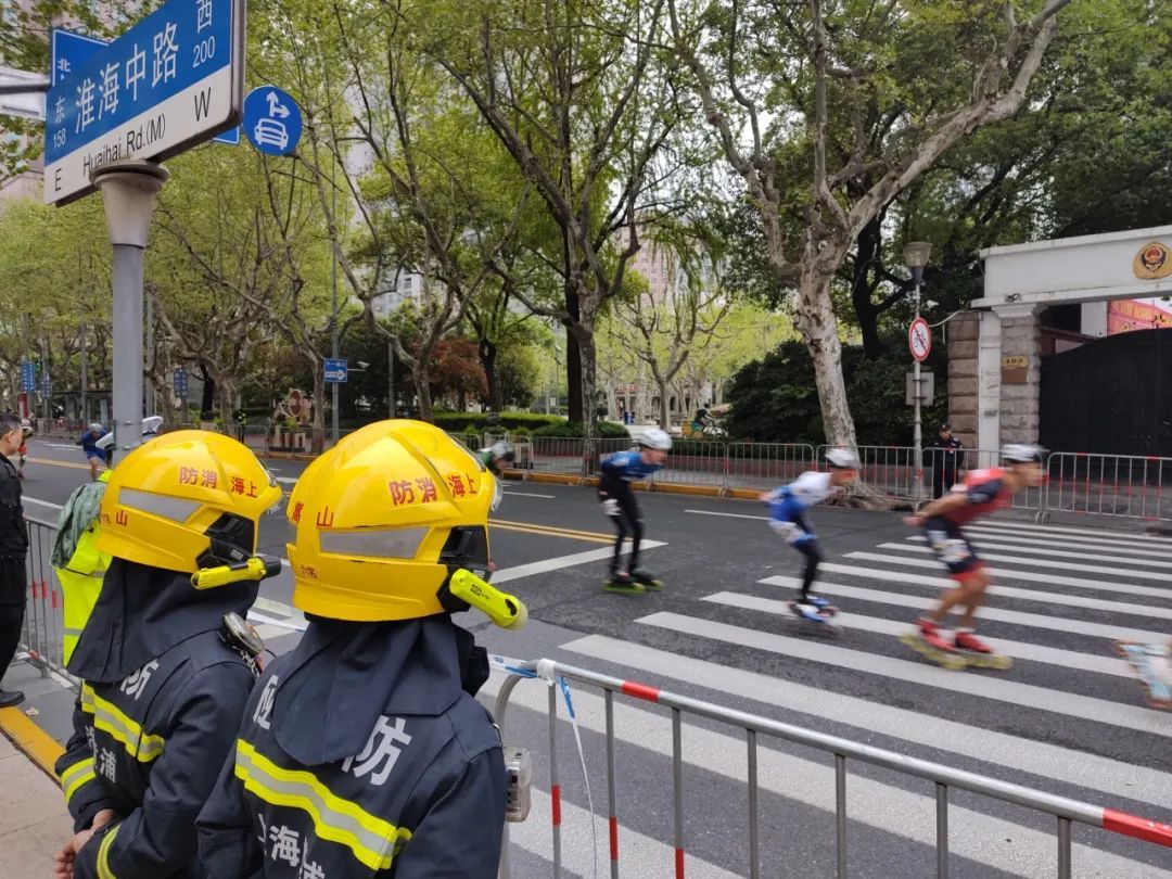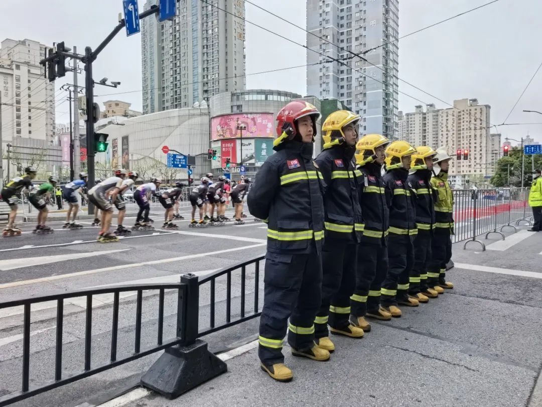 清晨7时整,“黄浦马拉松”激情开赛!轮滑选手从金牛广场率先出发,路跑选手紧随其后。沿途,黄浦消防指战员早已就位,百余名消防指战员、9辆消防车按区块分段,在重要路段沿线开展贴身式驻防值守。