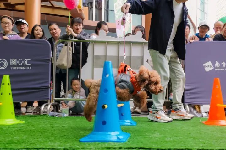 瞧!“狗狗运动员”们在主人牵引下赛出速度、赛出风采、赛出文明。奔跑、绕柱、跳跃……憨态可掬的小家伙们在赛场上尽情“炫技”,围观市民都变身“小粉丝”,在一旁加油鼓劲,现场热闹非凡。