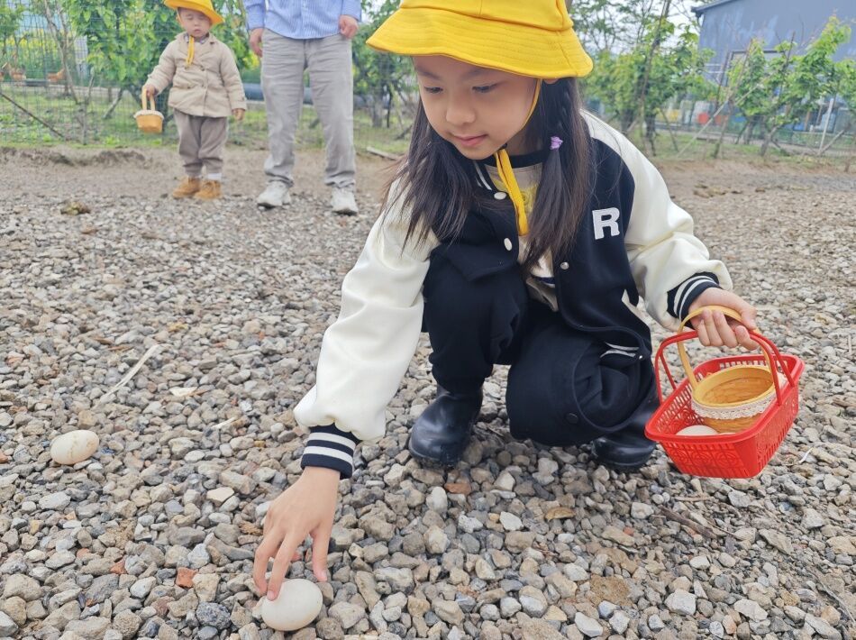 看到满院子的鸭子、母鸡、大鹅,孩子们七嘴八舌地询问着,一场关于“蛋”的争论赛开始了。他们仔细寻找着隐藏在各处的鸭蛋,小心翼翼地捡起鸭蛋,轻轻地放在篮子里,生怕打破这些脆弱的生命。