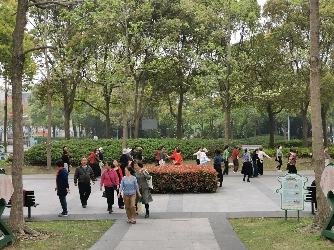 今晨,我区大部分街镇出现大雾,局部地区能见度不足200米。上午9点左右,阳光露脸,雾气渐渐散去,但天空云层较厚,体感有点闷热。在金山好人公园里,草木绿意葱葱,不少市民沿着小径散步、或锻炼身体,或闲聊。天气忽冷忽热,有些市民穿着单衣,有些还穿着棉外套。