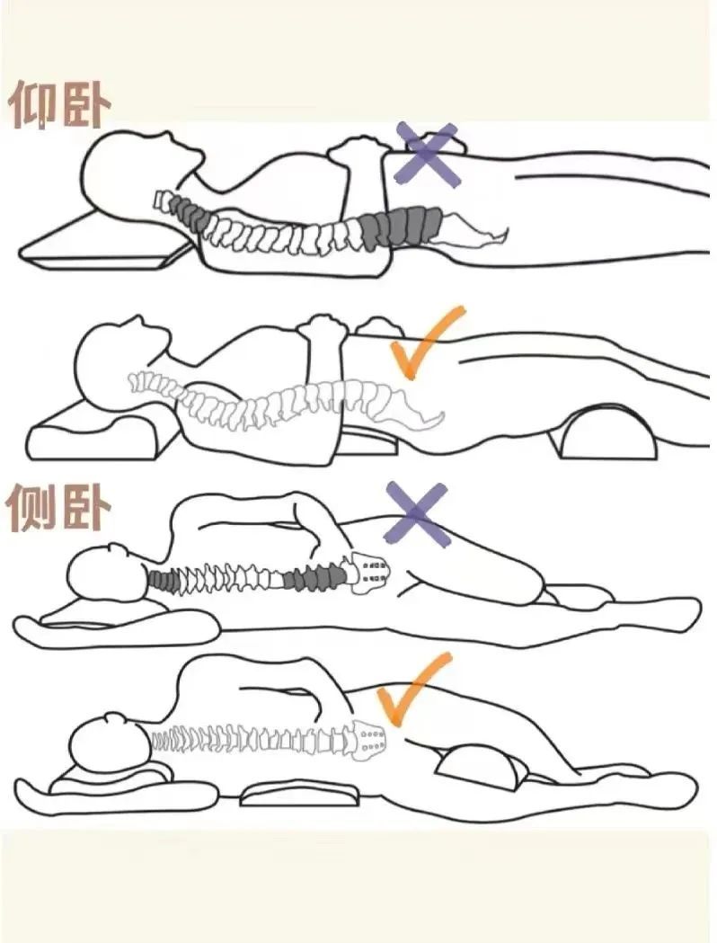 对于腰椎间盘突出患者,建议选择仰卧或者侧卧。有条件的患者,仰卧位时应在双下肢下方垫一软枕,以便双髋及双膝微屈,全身肌肉放松,椎间盘压力降低,减小椎间盘后突的倾向,同时也降低髂腰肌及坐骨神经的张力,这样能有效地防止腰椎间盘突出症的复发,是腰椎间盘突出症患者的最佳体位。