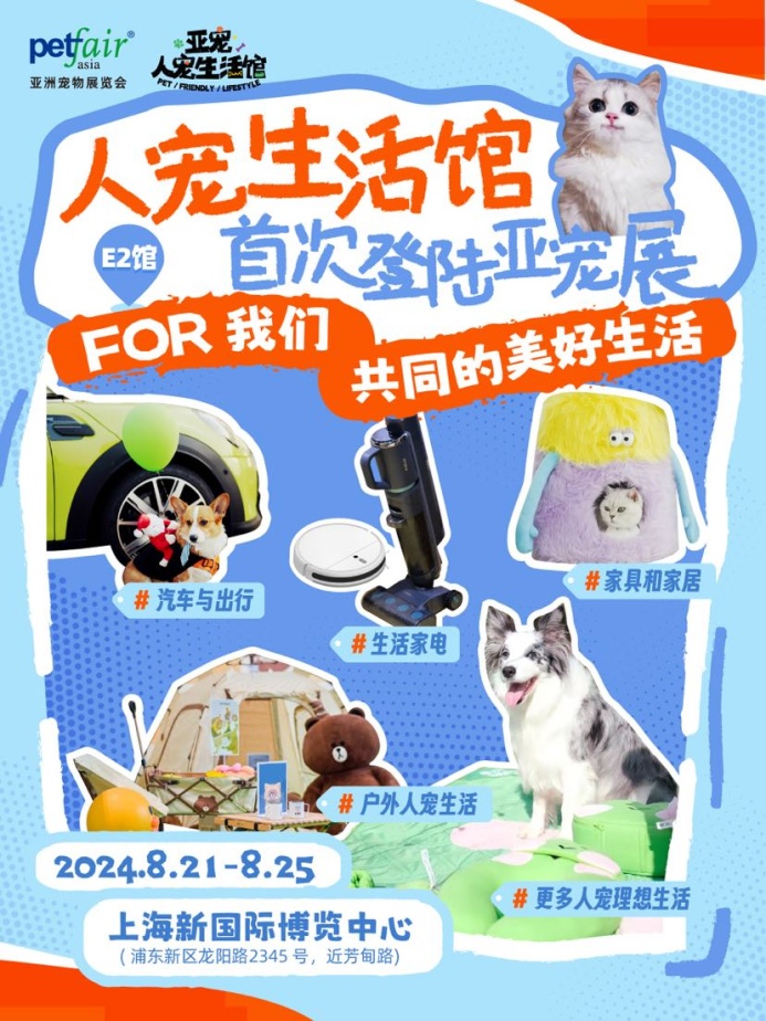 2024亚洲宠物展览会将于今年8月在新国际博览中心举行。根据主办方最新官宣,今年展会将全新推出“人宠生活专区”,定位“人宠共用产品”,例如小家电、家居家具、车与出行、户外等,专注人宠共同美好的生活,围绕人宠共居,展现“FOR我们共同的美好生活”。此外,为顺应人宠共居市场发展,挖掘宠物相关原创设计人才,培育行业新兴设计力量,还将举行首届“人宠共居原创设计大赛”。