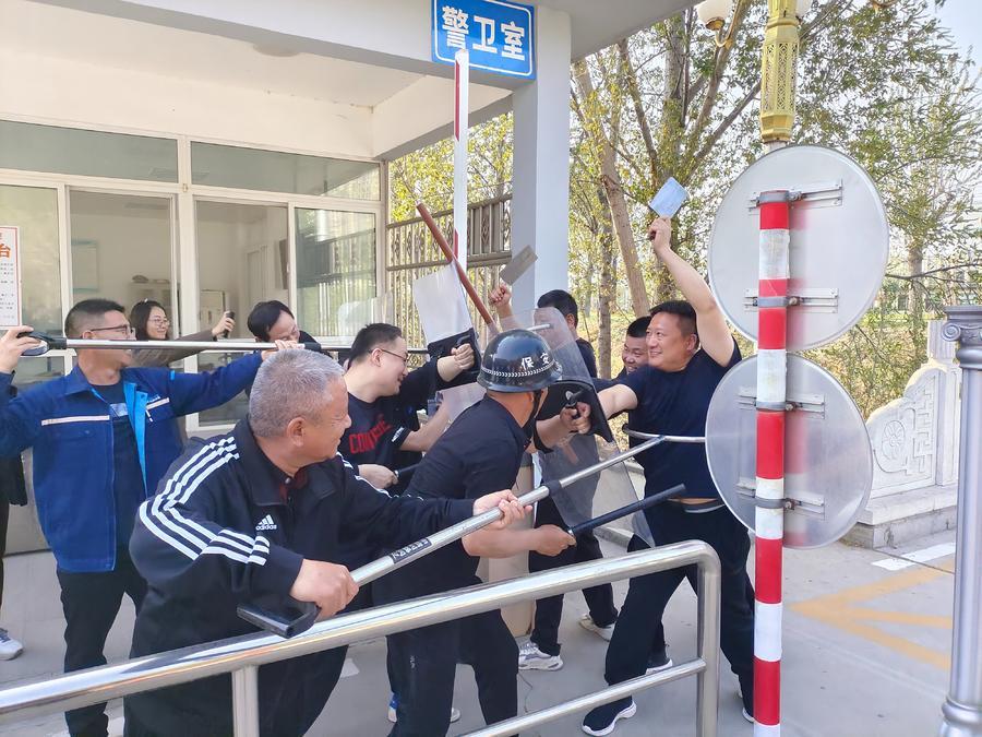 演练前,全员学习了防暴钢叉、防暴盾牌、警棍等器械装备的规范使用方法及遇到突发事件时的处置办法,确保在突发情况时,能第一时间充分利用防暴器械,制服暴力人员,为防恐防暴演练做好充分准备。