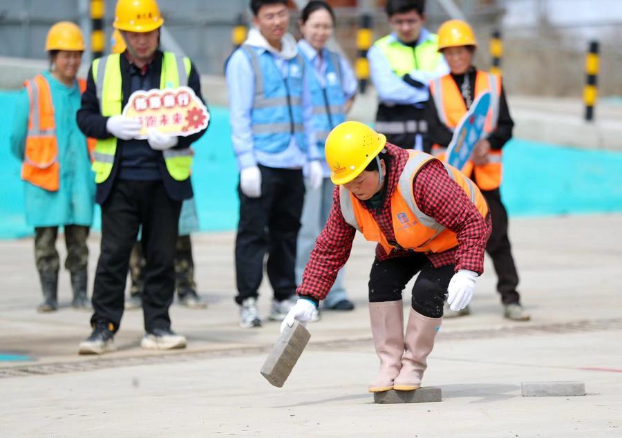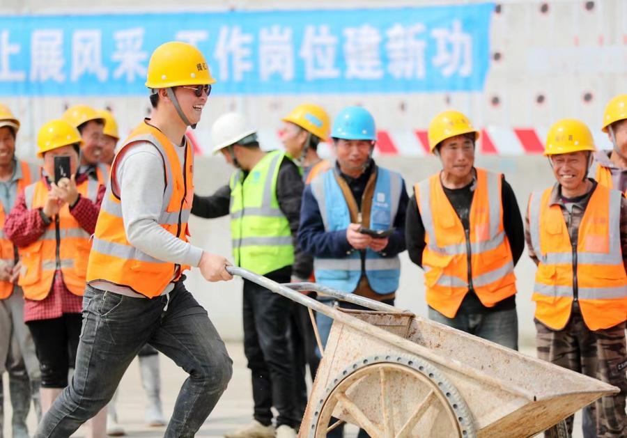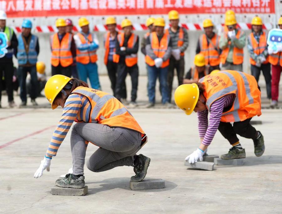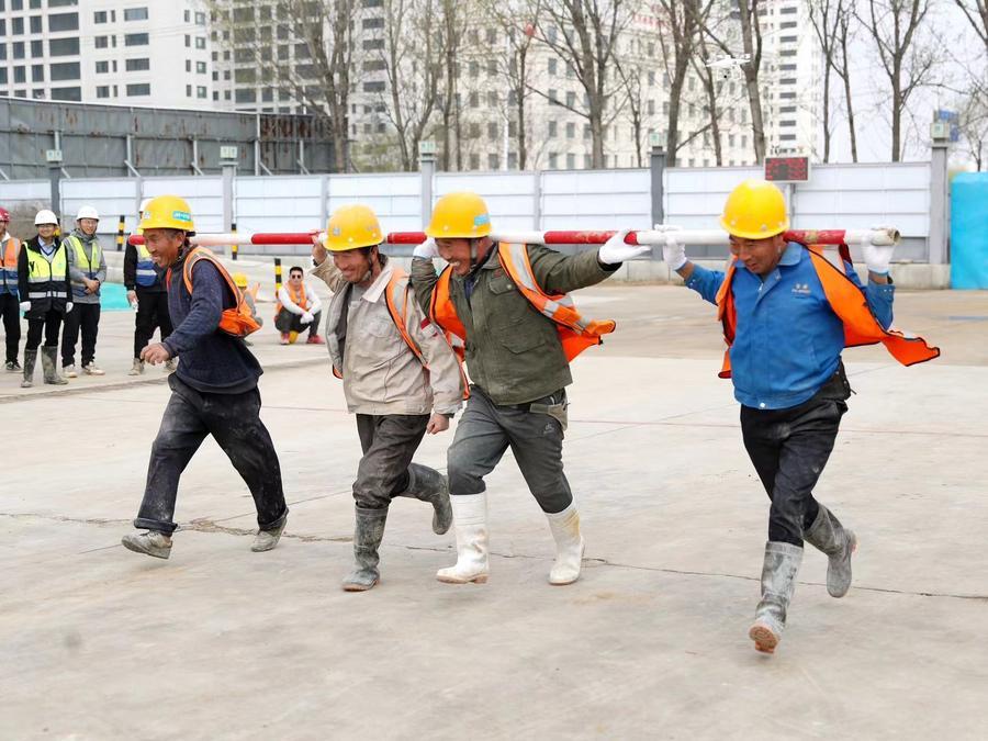 身穿工装的建设者进行趣味运动竞技,让人想起经典电子游戏《超级玛丽》。趣味运动会丰富工地业余生活,给建设者带来放松欢笑,共迎五一国际劳动节。
