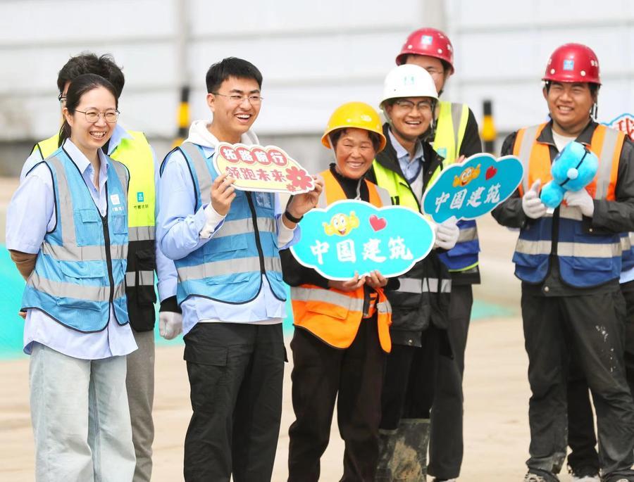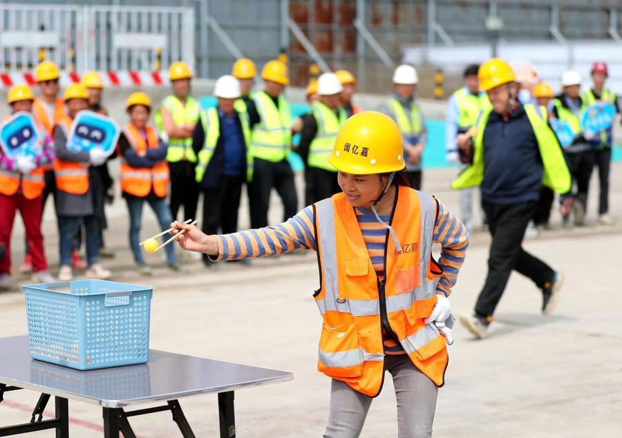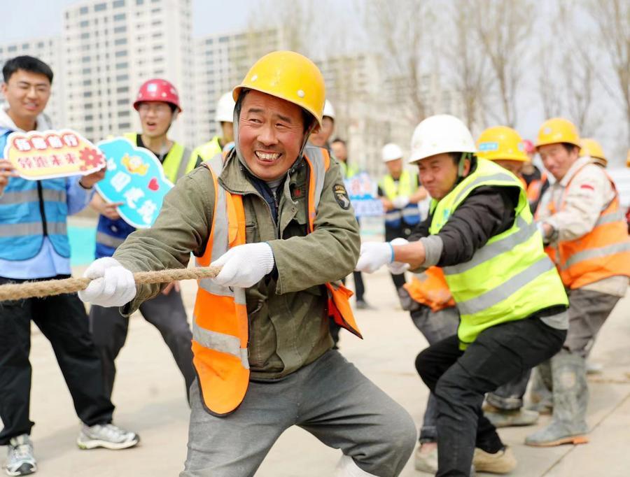 4月15日,青岛海洋活力区地下环路项目工地现场,一场以“基建先锋,同筑幸福”为主题的建筑工人趣味运动会快乐上演,中建八局120余名建设者共同参与“拔河比赛”“摸石过河”“快乐司机”等趣味运动项目。