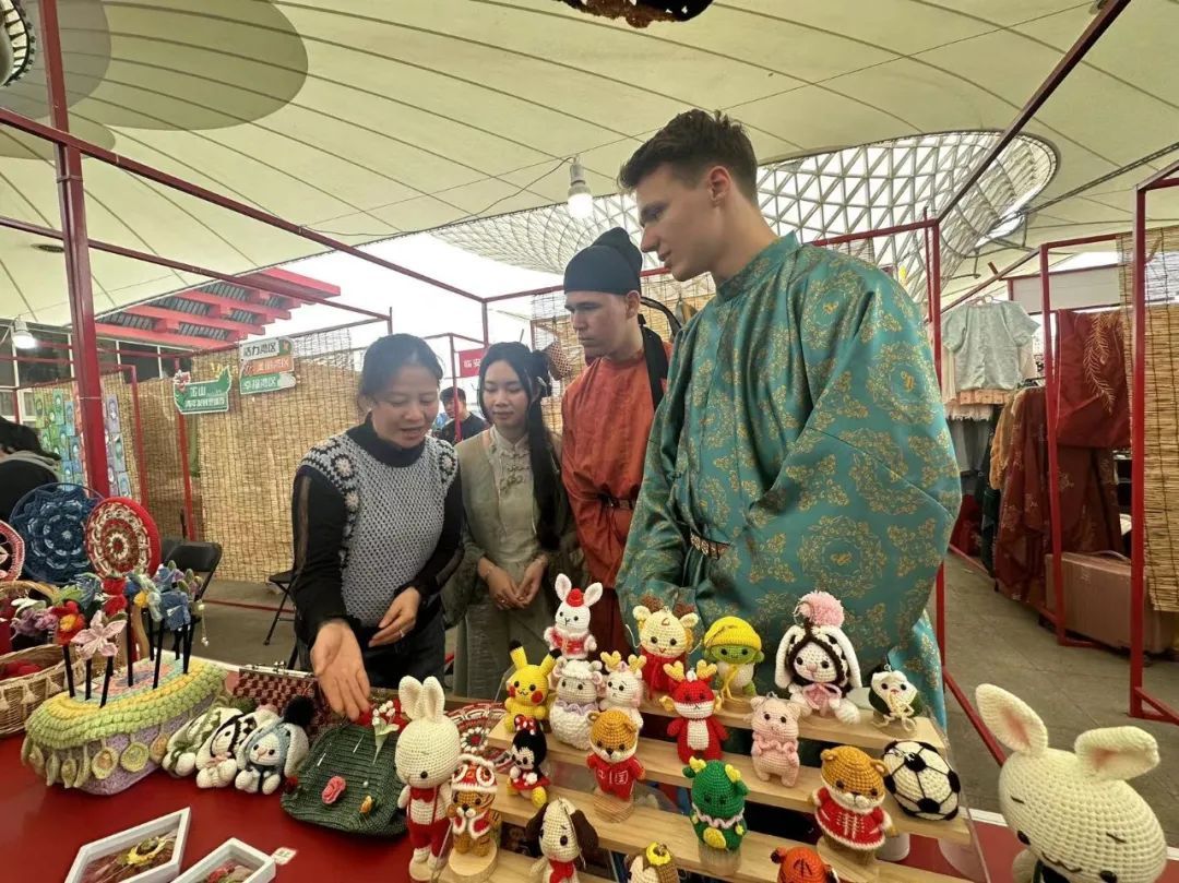 来自中铁物贸上海公司的团员青年王海如作为志愿者协助售卖,她表示很开心有这次机会能参与中国华服周活动,现场氛围特别好,对莘庄钩针编结有了更直观、更深入的了解。活动现场,不少市民都穿着汉服前来打卡,本次展览还提供了集章活动,在不同展位集齐相应数目可以兑换礼物,很多可以盖章的展位前都排起了长队。