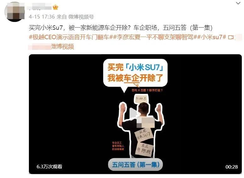 对此,极越方面向第一财经表示,上述员工是因为严重违反极越公司规定而被解除劳动关系。该员工是极越社交媒体岗位的运营人员,却以自己个人名义在全社交平台开设矩阵账号,大肆宣传友商小米SU7的产品,时间长达三个月,违反了劳动合同规定的“不从事与公司竞争业务”的条款。另外,极越方面称,该员工在职期间无故请假,并通过编造虚假理由不到岗,存在严重旷工行为,违反了公司的劳动纪律。