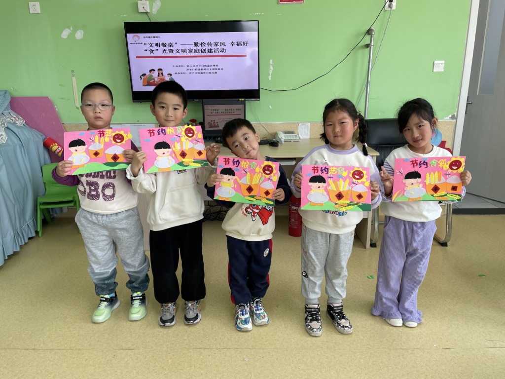 刘伟浩向孩子们讲解文明餐桌礼仪知识,呼吁儿童节约粮食、文明用餐,合理使用公筷公勺,养成良好的用餐习惯,减少餐饮浪费行为。讲座后带领儿童们制作了文明餐桌宣传画。孩子们在午餐时积极争做“文明餐桌、光盘行动”的小小宣传员,提醒大家避免浪费现象的发生,营造节俭用餐的好风尚。