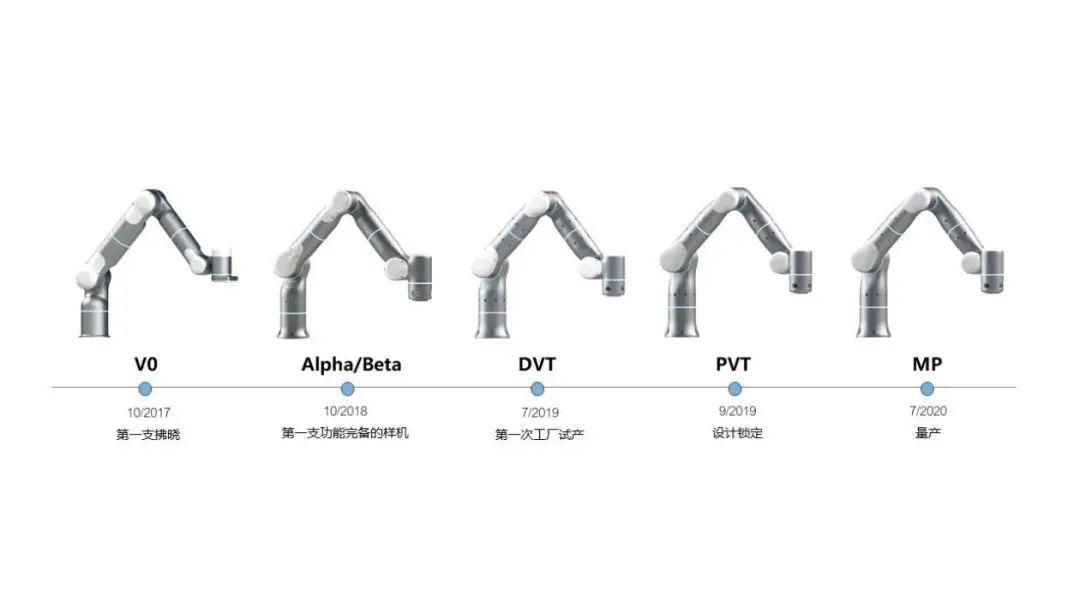 为了使机器人在工业等级上满足所有功能需求,同时在外观上不但能高度体现功能、还要更柔性拟人,非夕在机器人本体的工业设计上进行了许多创新。从2017年的第一台工程样机,到2020年的工业级量产版本,自适应机器人Rizon拂晓历经5次大迭代、8次小迭代,足以体现出产品打磨的高要求和精细度。