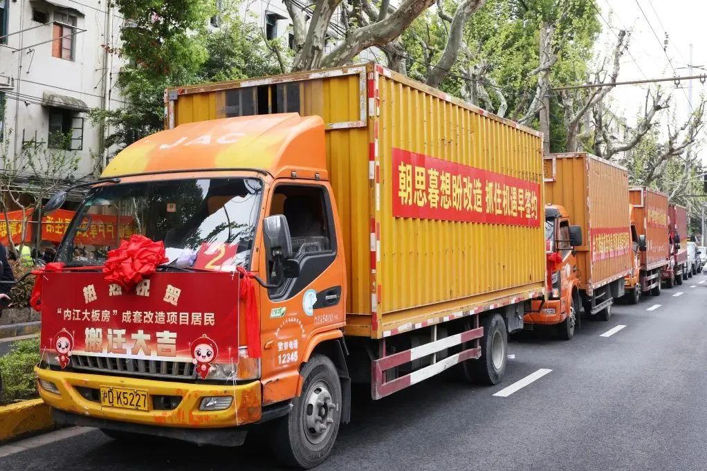 近日,内江大板房成套改造项目现场举办了集中搬迁仪式。五辆搬场车装满了家具,也满载着居民对新生活的热切期盼,在锣鼓声和欢呼声中缓缓驶离,拉开奔赴新生活的帷幕。