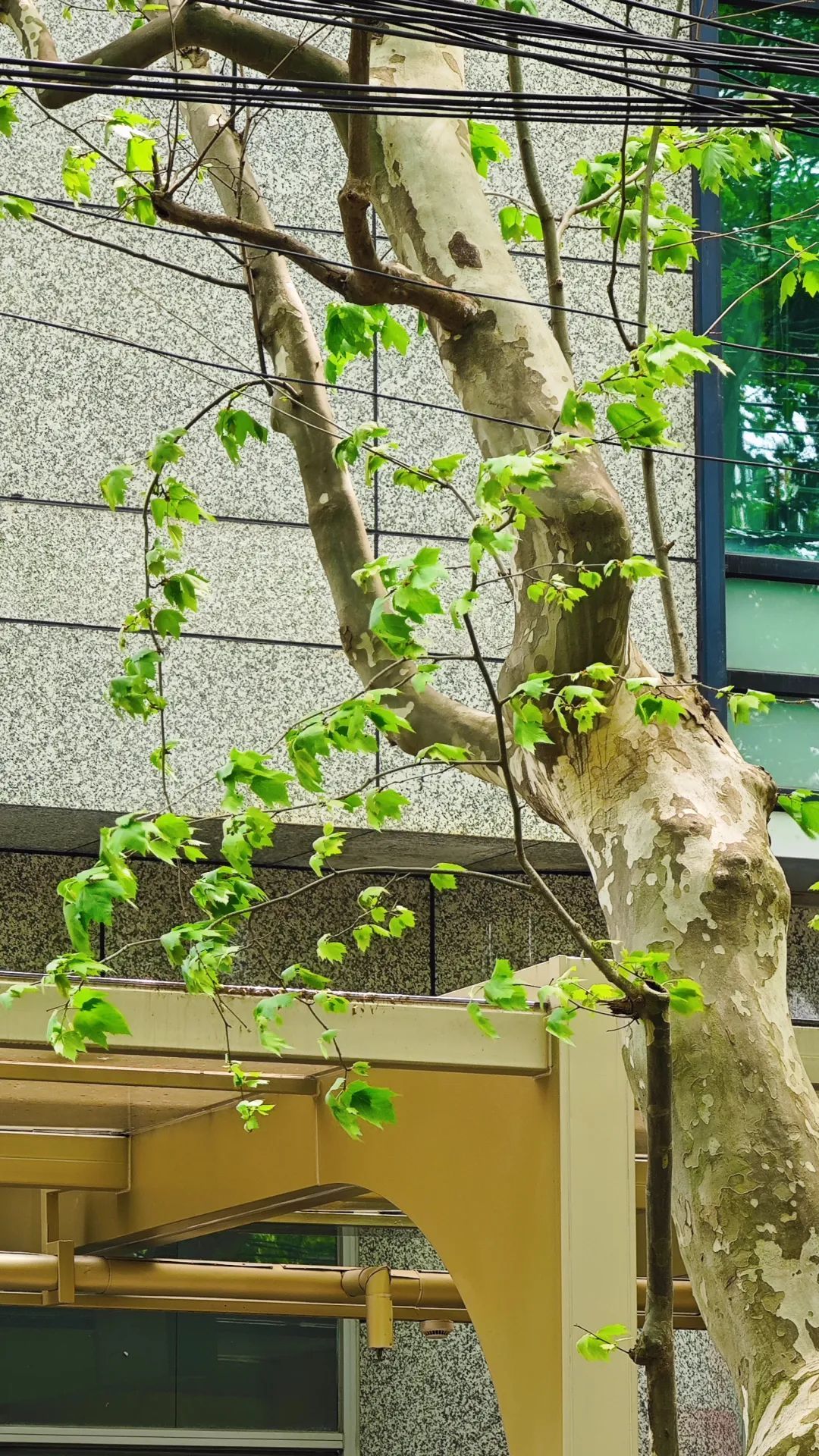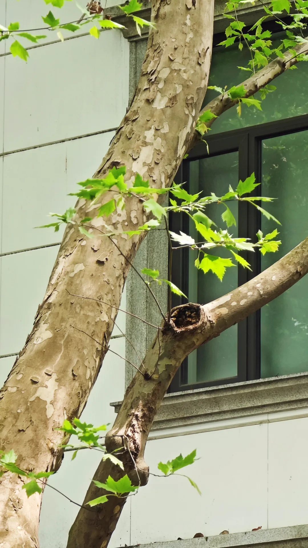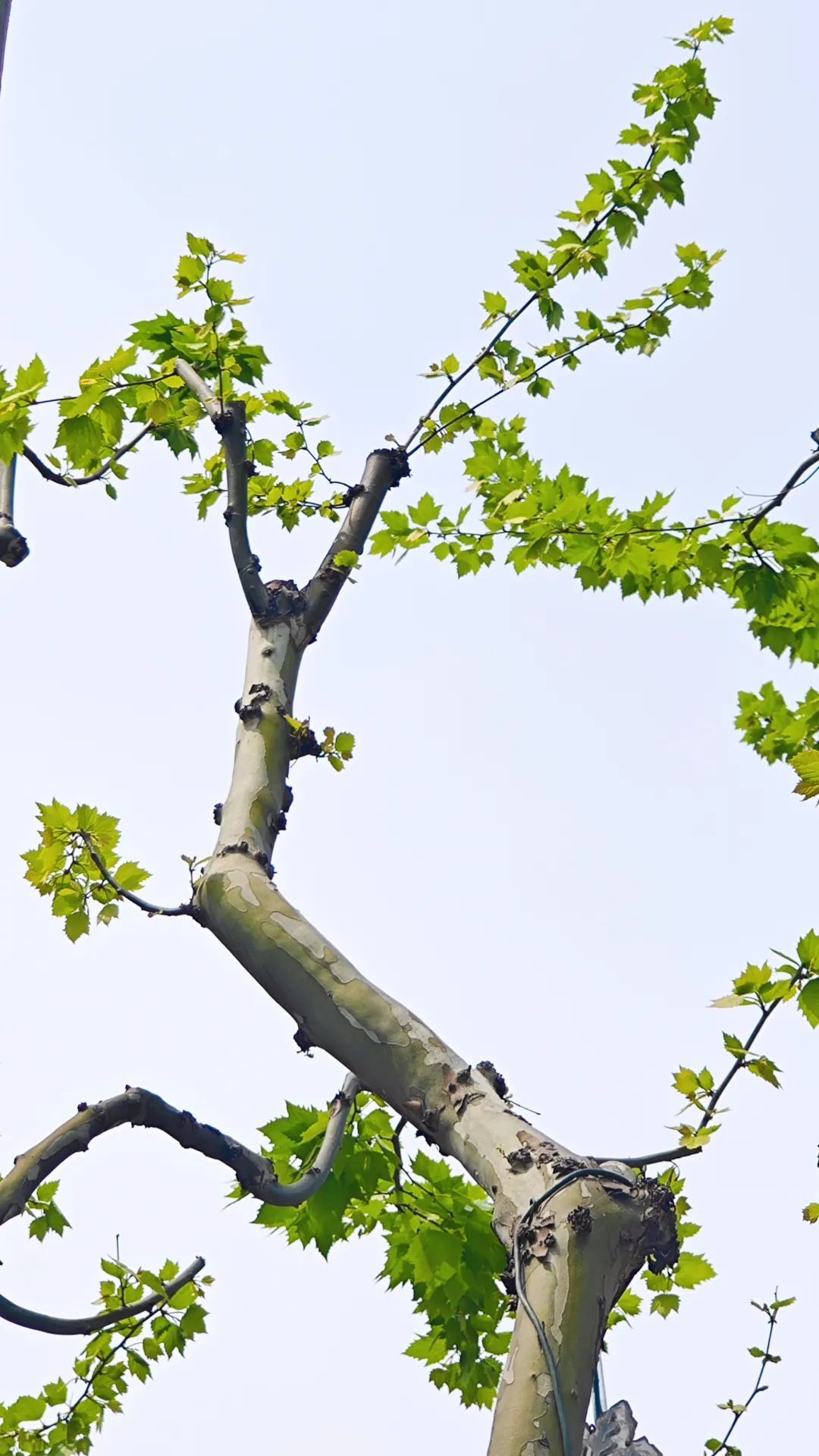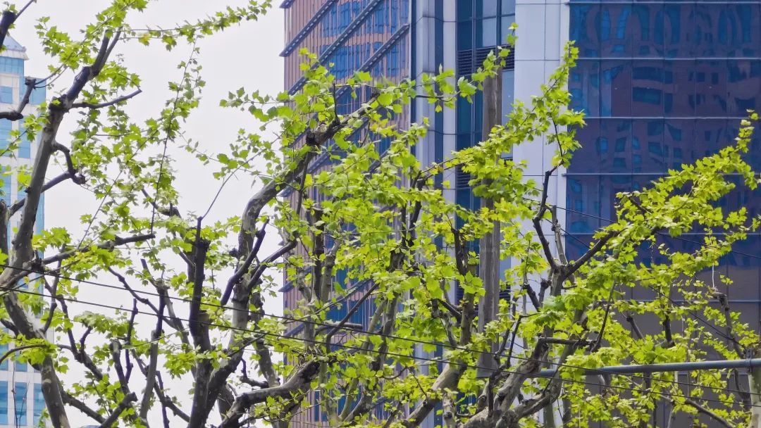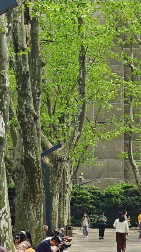 不久前还光秃秃的悬铃木树冠,