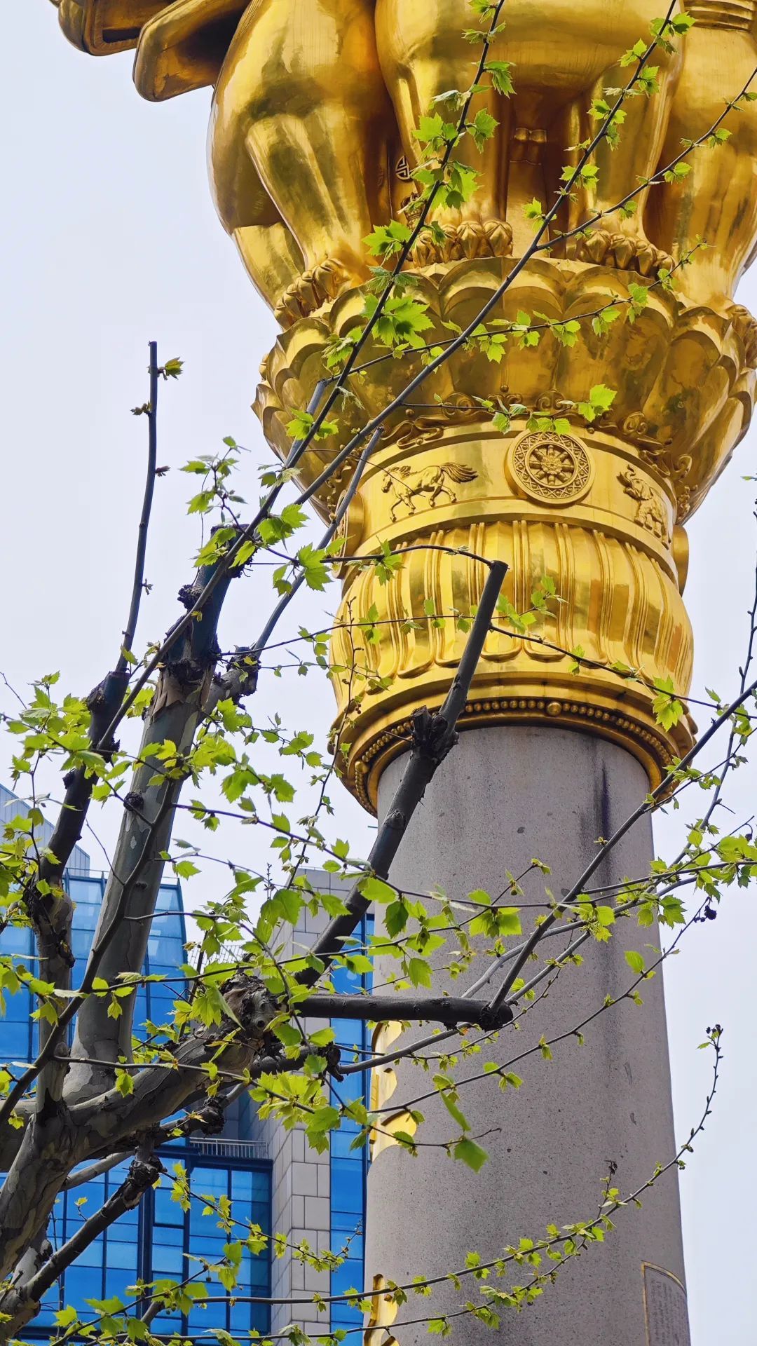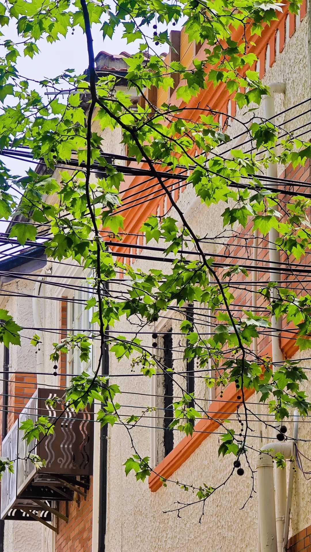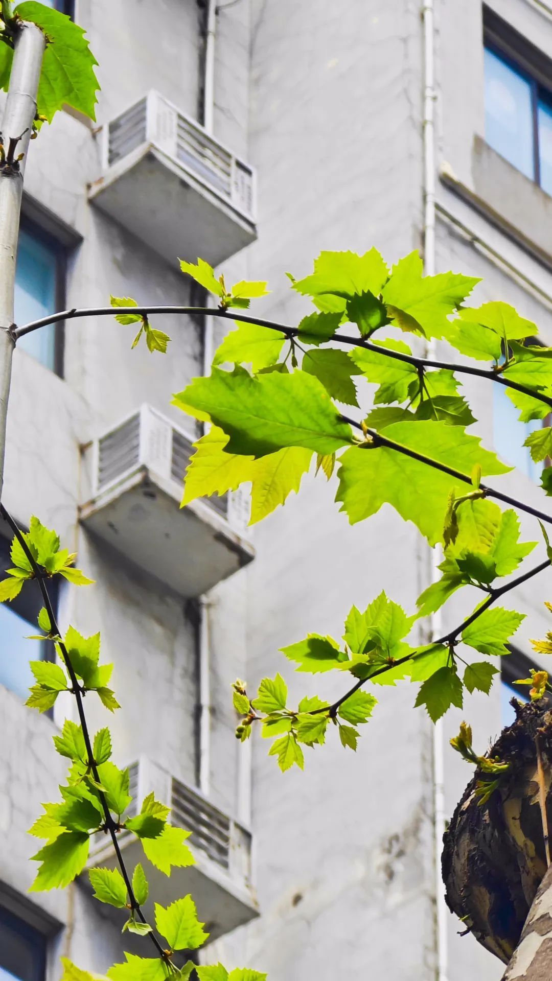 不久前还光秃秃的悬铃木树冠,