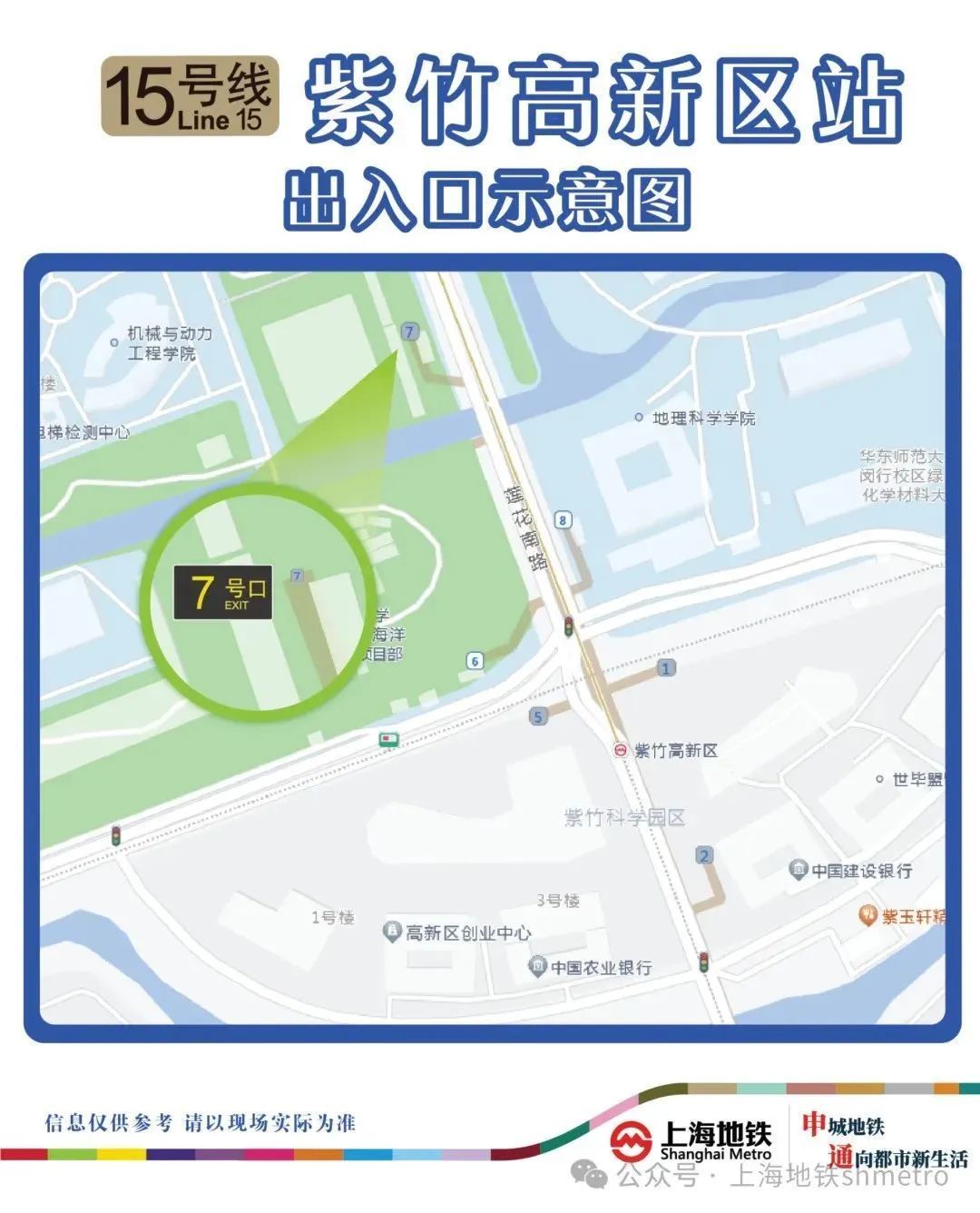 ,近上海交通大学闵行校区东3门。需要从15号线紫竹高新区站7号出入口通行的乘客可根据站内导向标志、公告等指向信息出入车站。
