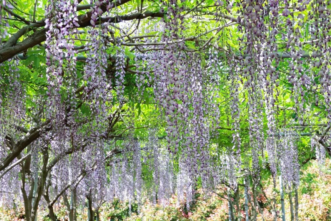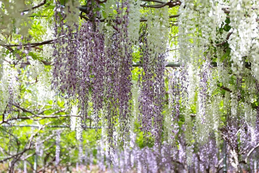 一年一度的紫藤季来啦!眼下,位于广富林郊野公园里的紫藤花迎来了盛花期,紫色、白色的花朵呈瀑布式倾泄在藤蔓下,好似串串风铃,颇为浪漫。