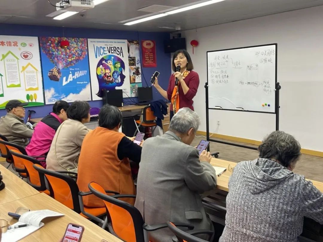 而近期上新的掌心课程同样受到社区老年居民的追捧。每周五,居民们齐聚市民驿站共建厅,在指导老师的讲解下,学习线上订票、订餐、邮寄快递等小程序功能,切身感受数字生活带来的便利,提升生活品质。
