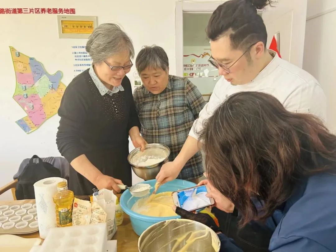 近日,在市民驿站四川北路街道第三分站魔幻厨房,社区居民们体验了制作美味蜂蜜鸡蛋糕的快乐。在烘焙师傅的现场指导下,大家将各种材料逐一称量、混合、搅拌。制作过程中,大家还互相交流心得,分享自己的烘焙经验,现场气氛十分融洽。