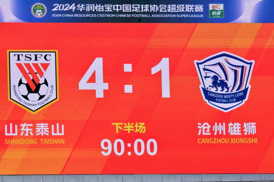 4月20日下午,中超第七轮,泰山主场4:1大胜沧州雄狮。