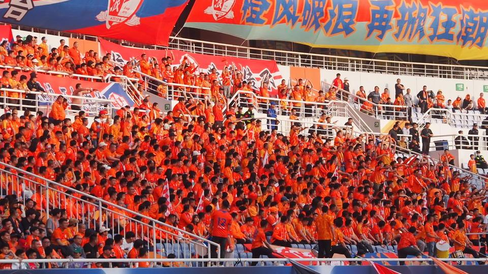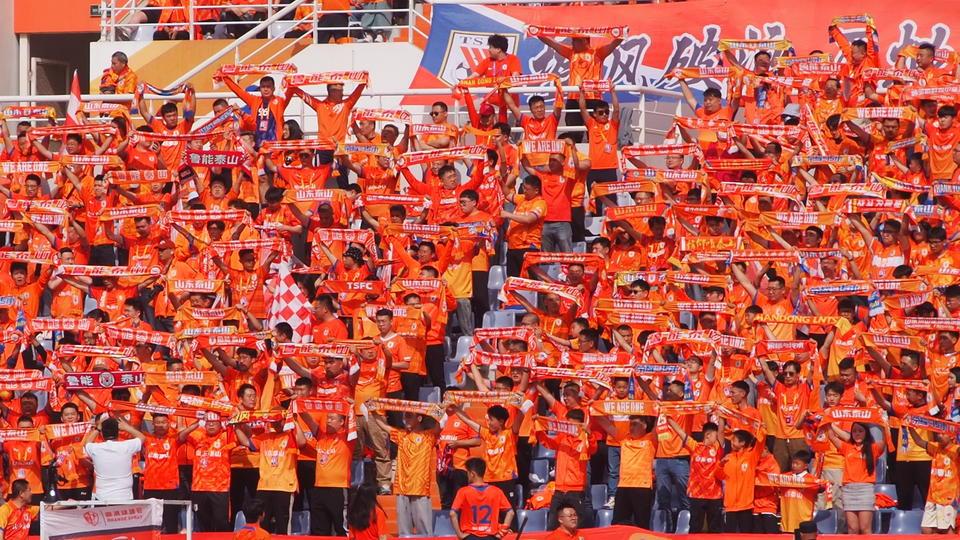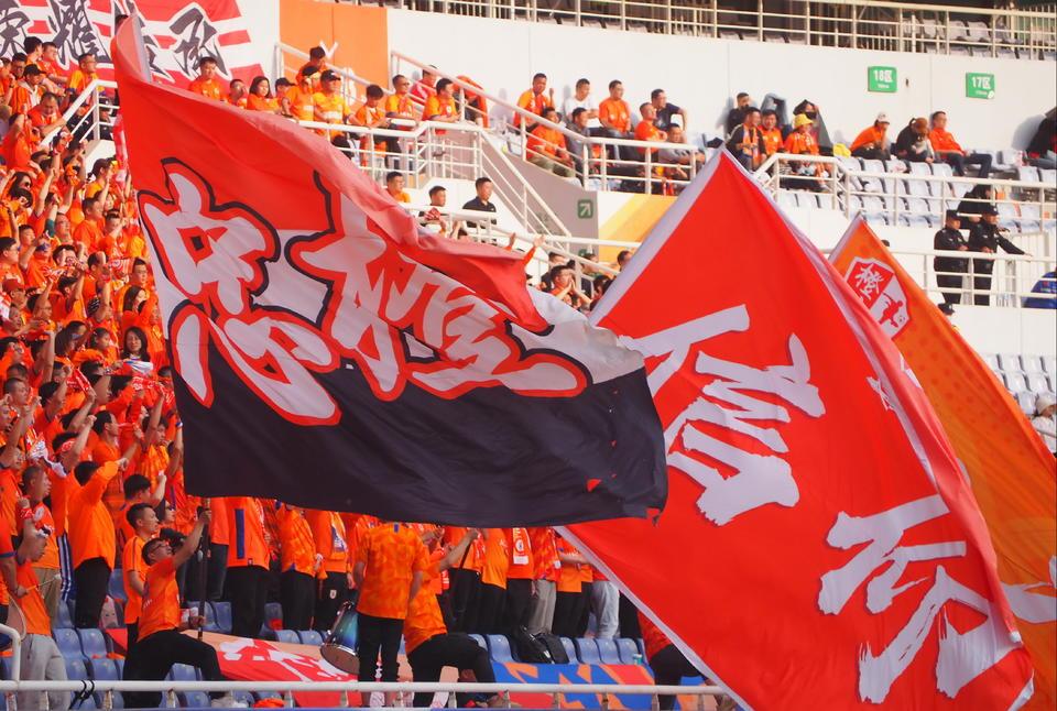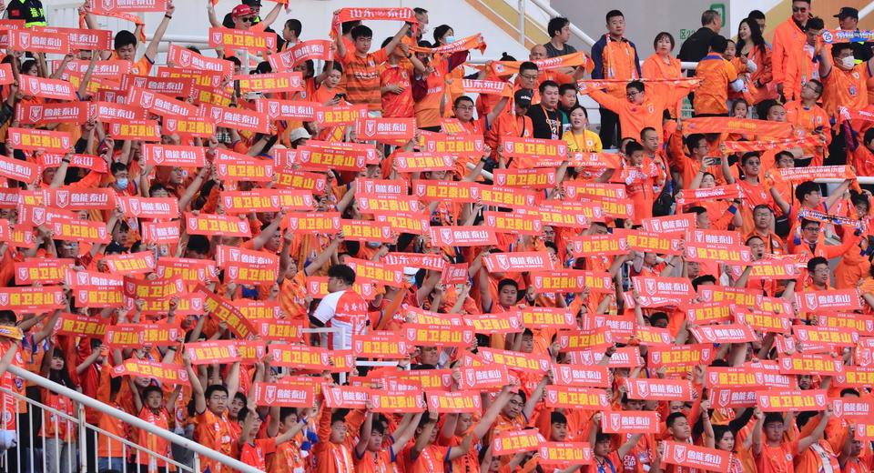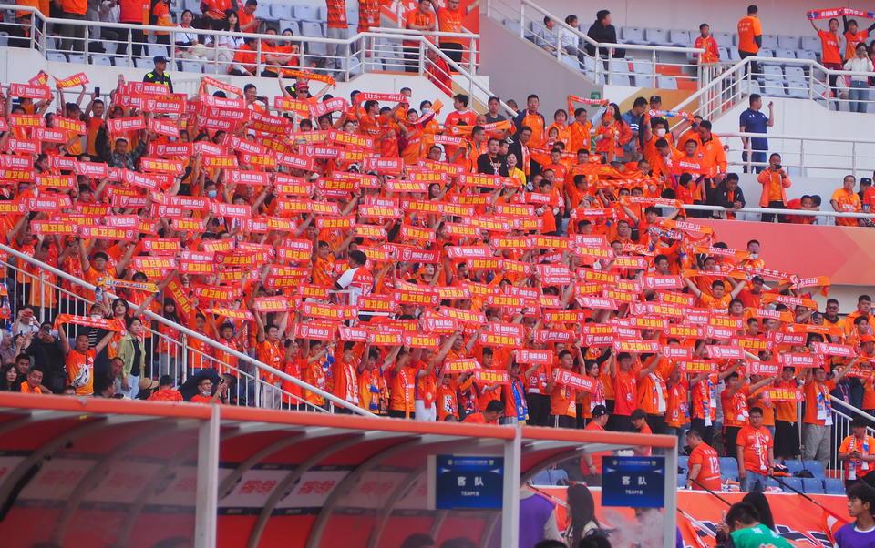 山东泰山获得久违的大胜,泰山队球迷全场欢腾,祝贺球队宝贵的胜利。