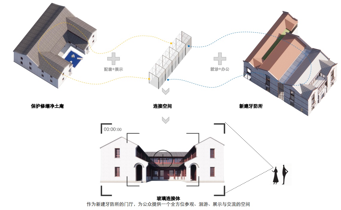 对于区域内地标性人文历史建筑——净土庵,项目采取平移后再落架重建的做法,将净土庵移至风貌街道起点,作为片区形象展示,不仅为城市保留了极具研究价值的古建筑,也为城市增加了人文历史风情。