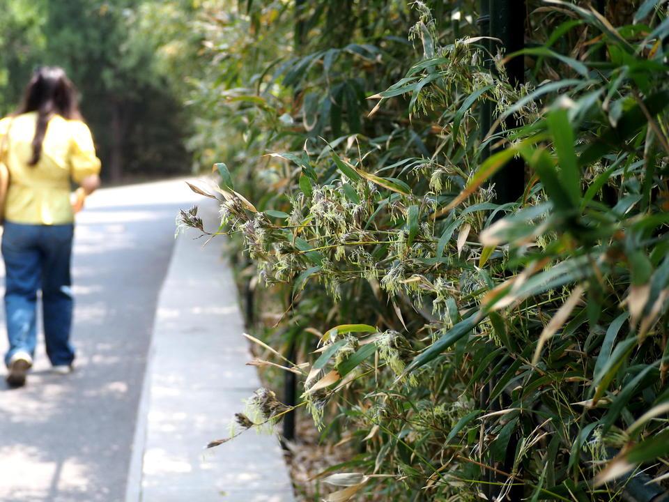 所幸开花面积并不大,从东到西延展大约200米长,开花的竹子稀稀拉拉,部分已经开始枯死。 其实前几年这一片竹子就有大面积开花的现象,如今那些竹子已经被更换,新竹林郁郁葱葱十分好看。