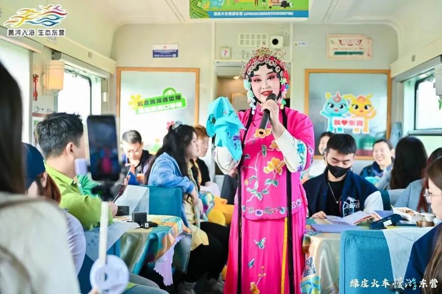 列车到达东营站后,国家级非遗短穗花鼓的演员们用精湛的演艺欢迎首发团成员。首发团成员将在东营进行为期两天一夜的东营之旅,深度体验东营的自然风光和人文历史,品尝当地特色美食,体验地道的风土人情。