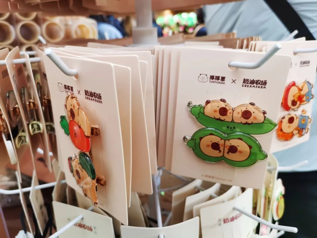 据工作人员介绍,豚豚崽和奶油农场均为酷乐潮玩旗下的IP,此次上新的两款商品均为上海限定款,目前仅在龙之梦线下有售。此前,两大IP也曾推出过挂件、包袋、发夹等数十款品类的联名款商品,在本次展览上均有销售,有不少豚豚崽爱好者慕名前来购买收藏。