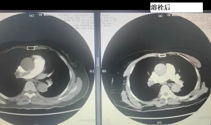 医护人员各司其职,与死神赛跑,分秒必争。经过2个多小时的抢救,术后患者呼吸困难明显好转。考虑患者仍有病情加重的可能,医生进行了阿替普酶静脉溶栓治疗,溶栓结束后患者血氧饱和度上升至98%。患者自觉胸闷明显缓解,生命体征平稳。