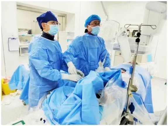 神经内科权哲副主任立即请介入专家紧急会诊,肿瘤介入科王伟昱副主任了解患者病情后马上赶到医院,带领医护团队启动急救程序,为患者行下腔静脉滤器置入术+肺动脉溶栓手术。