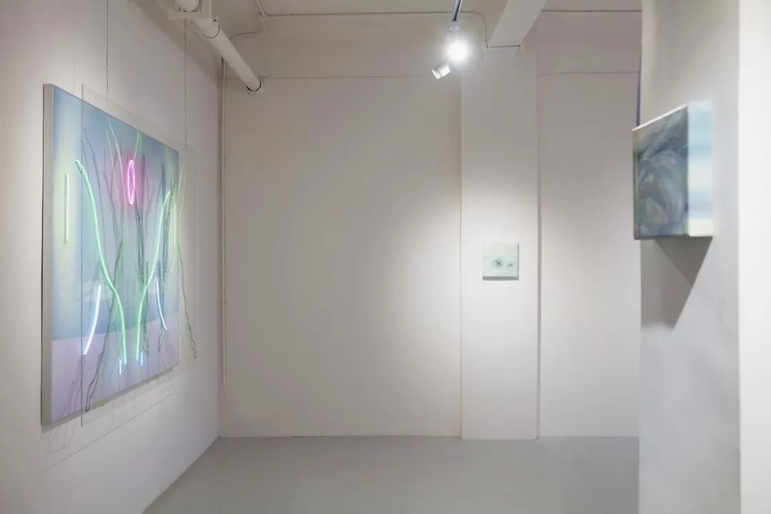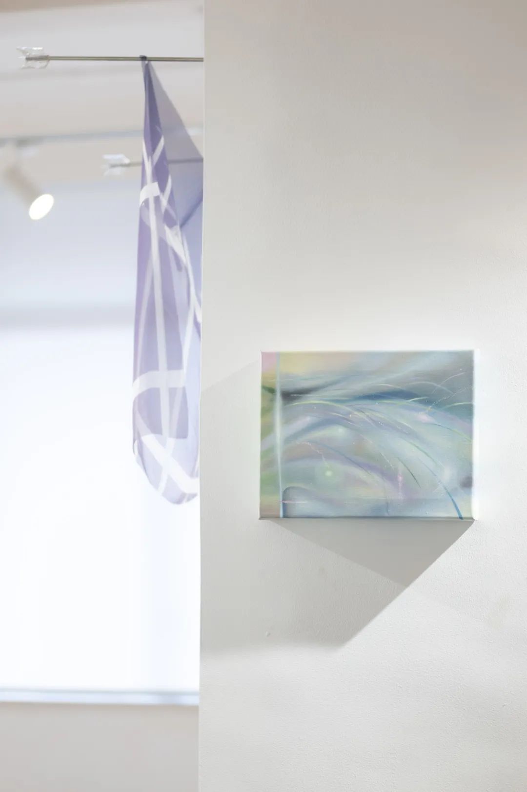 黄喆君是一名于改革开放时期在上海成长起来的90后。混合的工业材料和城市灯光塑造了她的视觉经验。她的作品常用反光表面、硬边、荧光炸眼,结合工业材料和传统绘画技术捕捉当代自然和非自然的景观。预设的西方形式语言以流动的媒材绘制,留下了其自然且有机的形态,同时展现了其怪异的人工感——就如中国古代墨水也成为了后工业世界的产物。