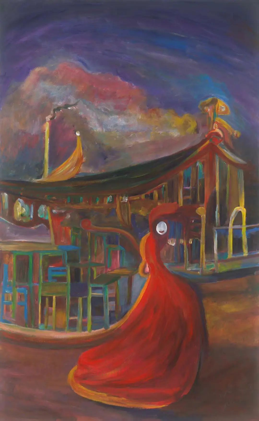除了绘本系列插画作品,还有《奇想之年》系列作品,以及为本次展览主题创作的装置作品:梦游骑士。她的作品绚烂而跳跃的画风,充满了让人无尽遐想的故事性。张扬的色彩拥有情绪也仿佛带着音律,有热闹的马戏团开场,也有文艺的音乐短剧,更有荒诞的滑稽小品。
