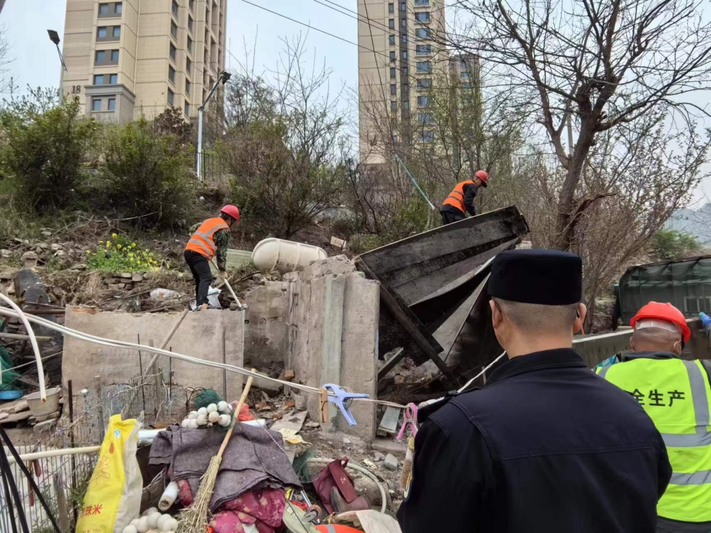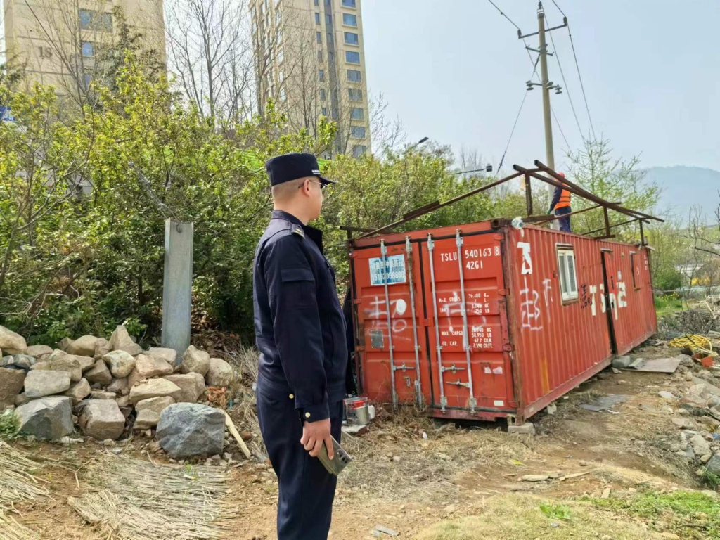 4月15日,执法中队组织施工队伍,对姜哥庄水库周边环境进行整治,将岸边各类违章搭建和集装箱进行拆除吊离,并清除圈占围栏。考虑到水库地势影响,执法人员提前沟通,配备大型机械进行垃圾外运,保证清理效率。