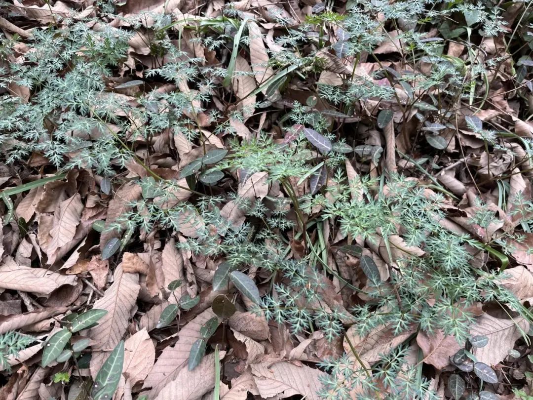明党参,为伞形科明党参属植物,其貌不扬,不开花时植株整高也就10-20cm左右,叶片细碎像蕨类植物一样,加上往往藏在落叶堆或石缝中,一般人很难注意到它,更不会想到它是国家二级保护植物,那它为何获此“殊荣”呢?其实,它是华东地区特有的单种属植物,即明党参属只有明党参一个种,且只有华东地区才能见到。这种“家族独苗”+“地区限定”的搭配,不仅显得珍贵,对伞形科植物系统发育的研究也具有一定的学术价值,确实应该好好保护起来。