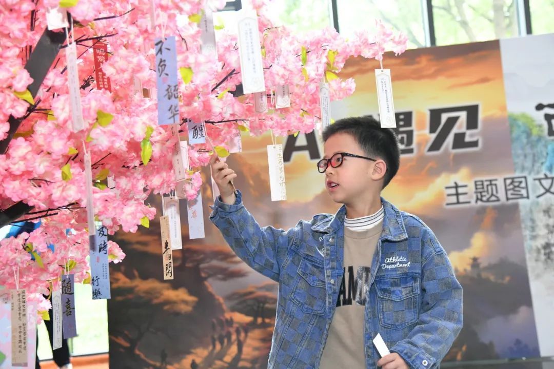 第29个“世界读书日”暨上海公共图书馆服务宣传周期间,闵行区图书馆主会场特别推出“当AI遇见古诗词”主题展览,科技赋能传统文化,以“AI绘画”“AI作诗”的形式,生动呈现出传统文化中的诗词意境,为读者们带来独特的视觉与思想体验。与此同时,邀请骆玉明教授畅谈杜甫诗词背后的生命哲理、杨焄教授解读人工智能与古典诗歌结合下的文学新风向、王炳文博士循着杜甫的漫游足迹再现江南图景,在与古人对话中,体味穿梭历史的浪漫;在行走“一江一河”前世今生的足迹中,感受发展变迁的浪潮;在海上近代园林影像溯踪、线上邂逅非遗春天中,领略文化多元的魅力;在“光圈里的上海影像”社会大美育作品展中,“育”见美好闵行。