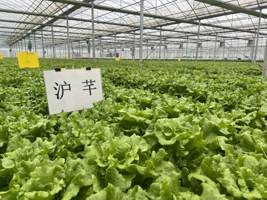 在春昌合作社生产基地,多个连栋设施棚内均栽种了“沪芊”生菜,与其他对照品种相比,“沪芊”种植区域,生菜个头更大,菜叶更饱满,有一定产量优势。经品鉴,“沪芊”相较其他品种的意大利生菜,叶片口感更脆。