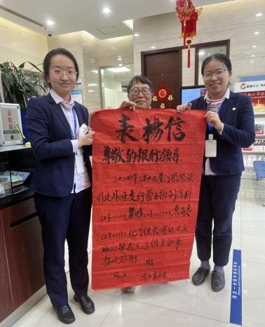 “厦门国际银行北外滩支行花了很长时间,不厌其烦地帮我点了很多分币,特此感谢。”这是来自厦门国际银行上海北外滩支行老年客户袁女士亲手写给该行的感谢信上的内容。