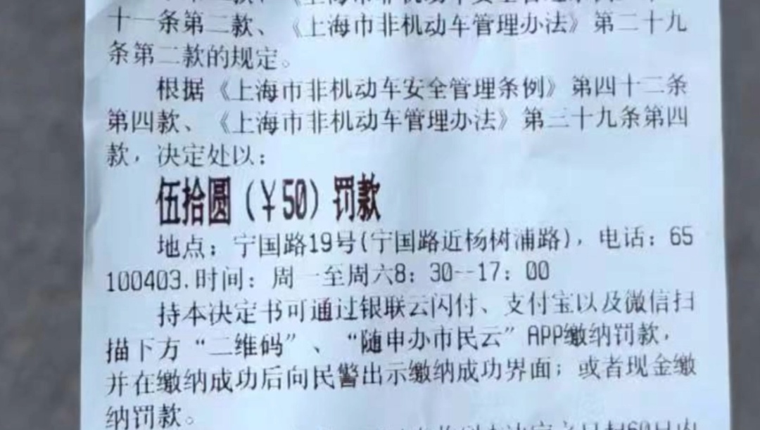 在最近几天的晚高峰时段,杨浦交警连续组织多批警力,在长阳路宁国路路口对违法使用超标电瓶的电动自行车进行集中清查治理。一名骑手被查到使用超标电瓶,电压达到52伏。经过询问,骑手表示这辆车是从某租赁公司那里租来的。民警随即对车辆实施暂扣,同时,根据《上海市非机动车安全管理条例》相关规定,对该骑手租赁超标电瓶的行为罚款50元。