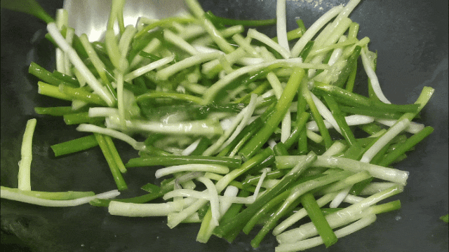再将清洗后的葱段放入锅中炒七分熟