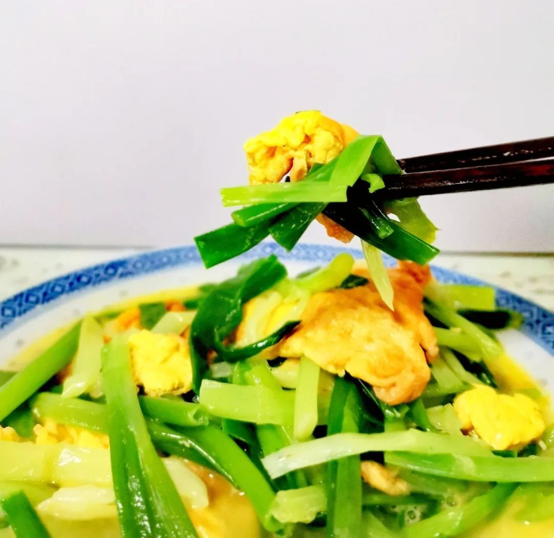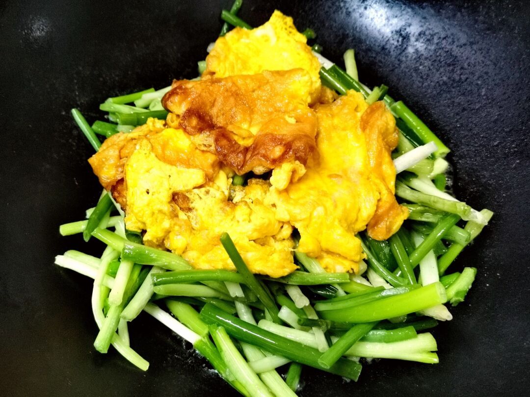 一盘鲜香爽口的农家胡葱炒蛋出锅啦