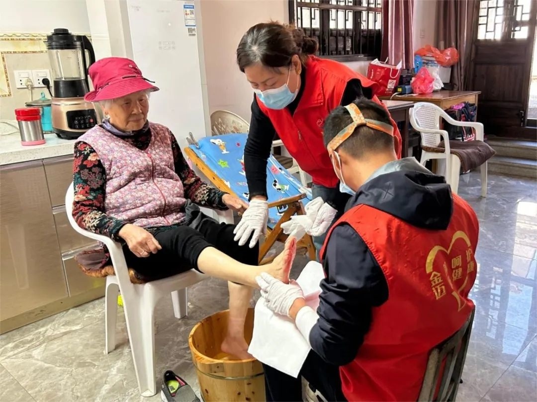 记者了解到,枫泾镇的“扦脚爱足”服务从2018年开展至今,最开始主要服务镇上养老机构内的老人,2022年起,服务对象覆盖了全镇90周岁以上的老年人。随着年龄的增长,人体指甲的角质层代谢减慢会导致脚指甲变厚,造成老人穿鞋、走路等诸多不便。另外,还有部分老人患有灰指甲,用一般指甲刀很难修剪,盲目修剪操作不当可能会造成感染,所以一直以来上门仟脚服务特别受老年人的欢迎。