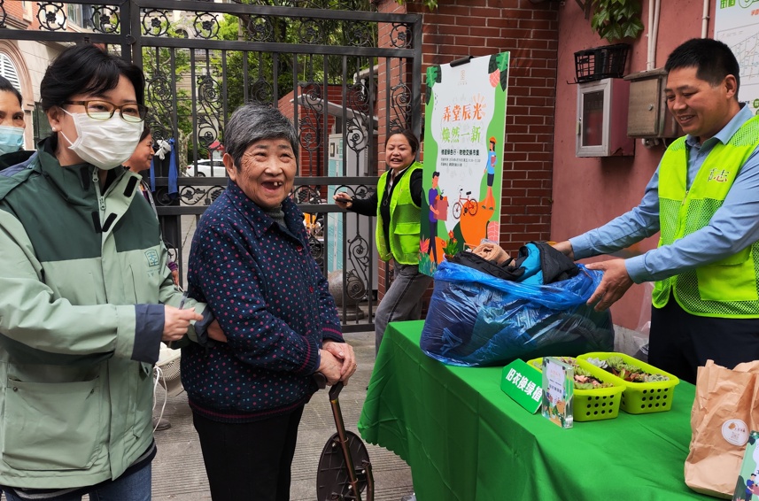 活动当日,居民们手捧各式闲置物品来到现场。现场有一位阿婆,手持一袋精心叠放、洁净如新的旧衣物,早早抵达现场。她笑盈盈地说:“这些都是我清理出来的,衣服都干净得很。”工作人员接过衣物,回赠大米作为感谢。