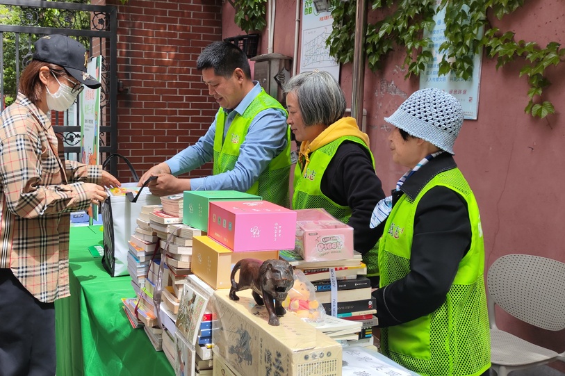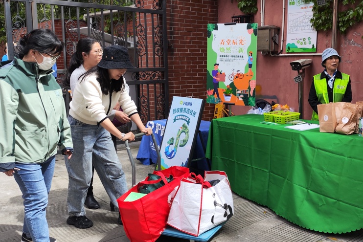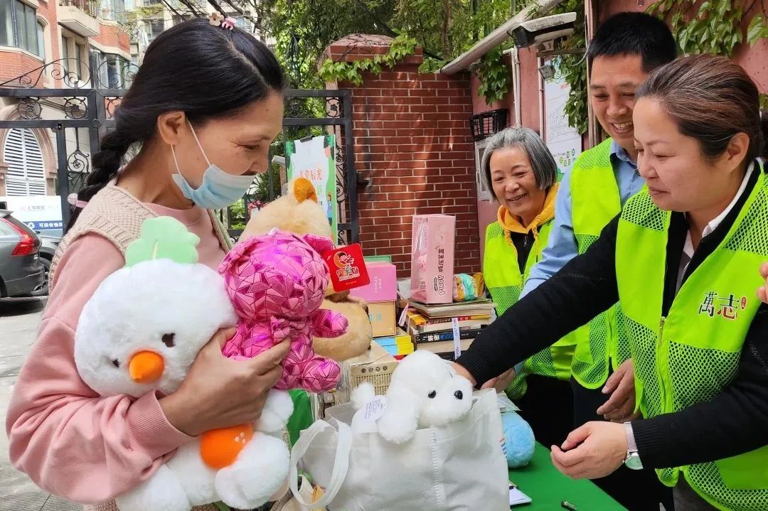 徐汇区天平街道日前在建国西路233弄开展了一场“楼道绿色行,物物交换市集”活动,旨在激活闲置资源,倡导环保理念。这场社区活动在一周前便通过布告栏海报与社区微信群双渠道广而告之,居民们积极参与。