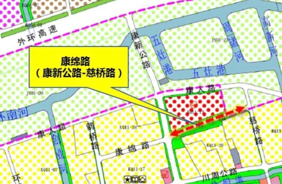 为完善配套路网建设、满足周边地块开发建设的需求,根据地区控详规划,拟新建康绵路(康新公路-慈桥路),目前设计方案正在公示中。