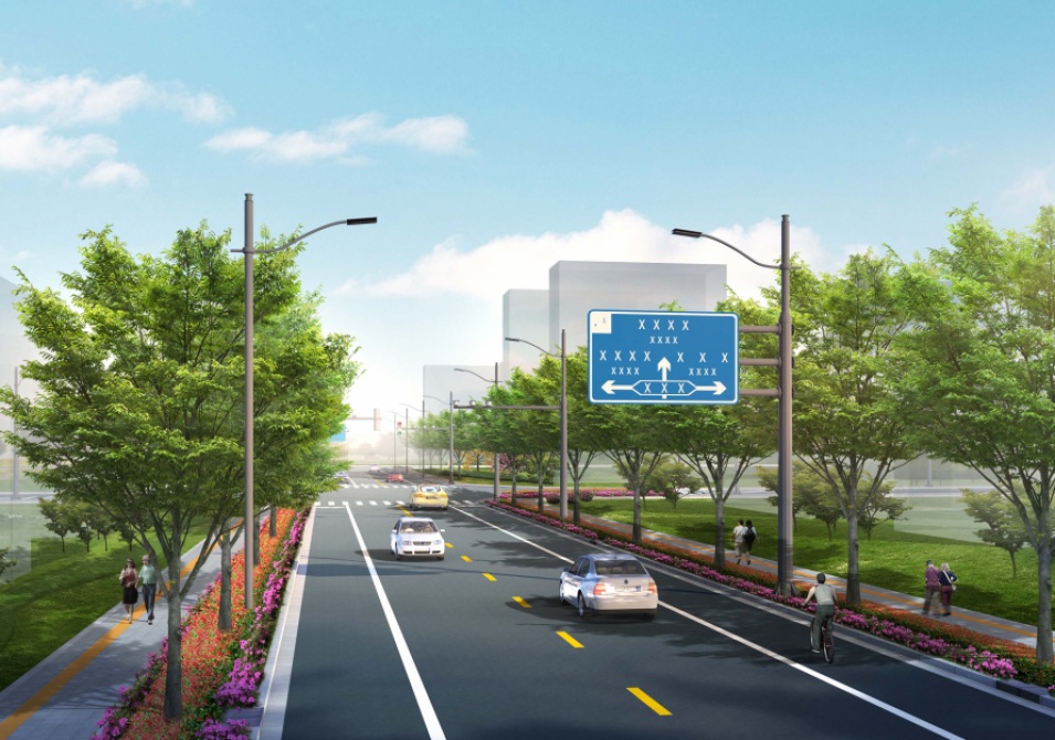道路工程、排水工程与绿化、照明、信号灯、交通标志标线等附属设施工程以及前期征收动拆迁工程。
