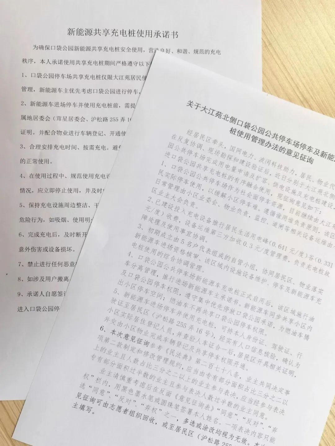 为最大限度发挥口袋公园共享充电桩及停车区域的使用功能,居民区实行内循环机制,遵循谁用谁负责原则,协调确定了各方权责。通过新能源车主微信群,招募了居民志愿者组建自管小组,征询并推动启用了车辆及充电使用管理办法,协同物业推进车辆信息登记。在多方合力,齐抓共管之下,上个月,口袋公园新能源共享充电桩正式开放使用了。