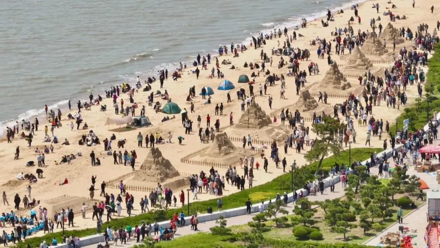 每年“五一”,这里都会耸立起座座沙雕