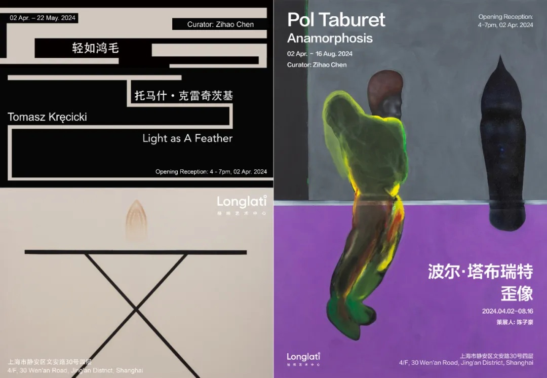 位于苏河皓司四层的Longlati经纬艺术中心正在呈现“托马什·克雷奇茨基:轻如鸿毛”和“波尔·塔布瑞特:歪像”双展,而苏河皓司五层则正在呈现Skyline公共艺术项目“经傲:意中人” 。