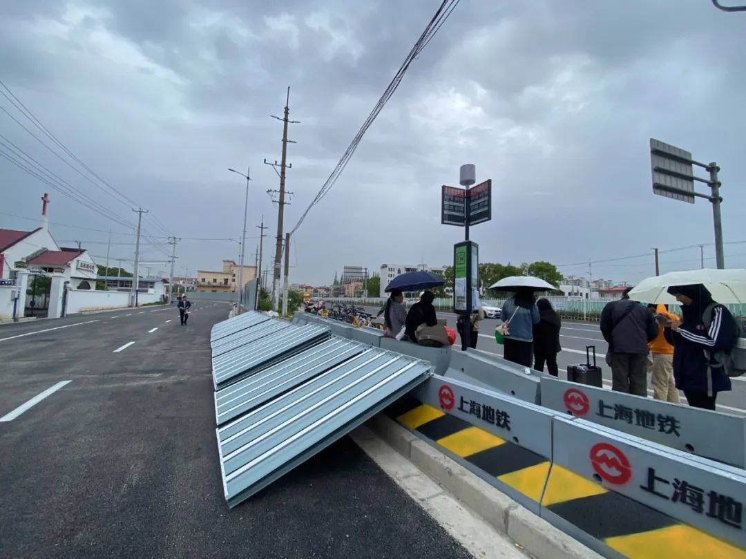 龙吴路放鹤路东侧站点搬迁后新站点位于吴泾福音堂南侧(崔松鸽摄于4月19日)